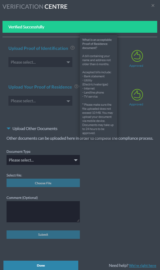 Add documents – Verification Center;