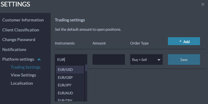 Option will enable you to set a default amount to be displayed when deciding to Buy or Sell, enables you to launch trades faster with the desired amount.