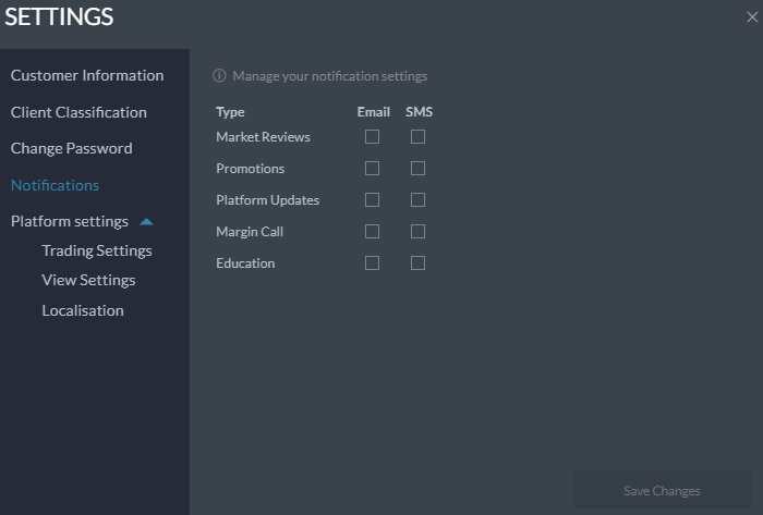 Notifications – Here you can select which notifications you would like to receive automatically, if any.