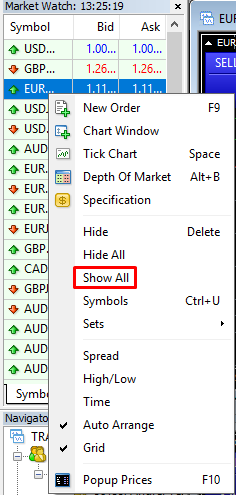 Will display some of the available assets under Market Watch:
